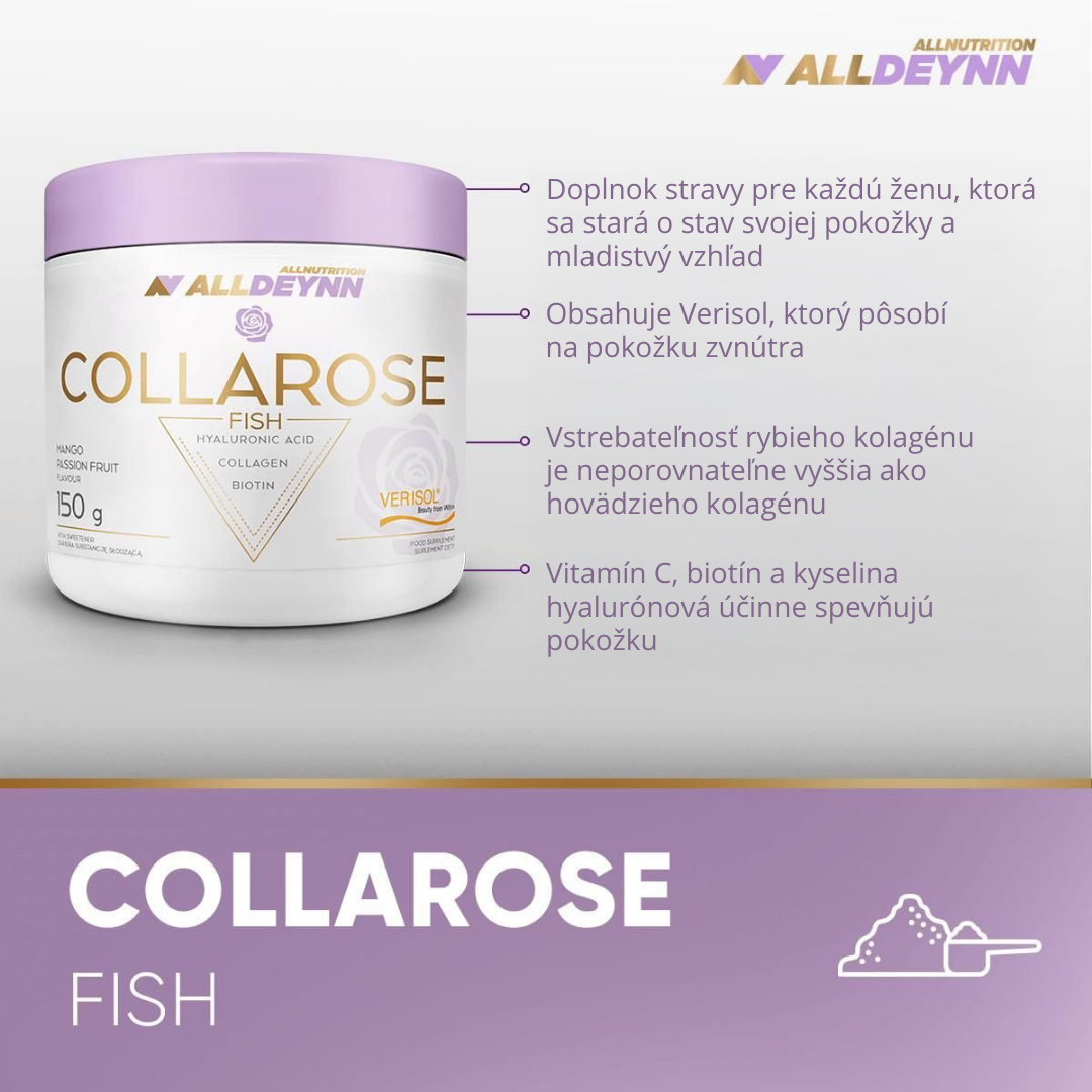 ALLDEYNN COLLAROSE FISH je mimoriadne prepracovaný výživový doplnok vytvorený pre ľudí, ktorí chcú doplniť vyváženú stravu a starať sa o svoju krásu, vzhľad pokožky a vlasov.