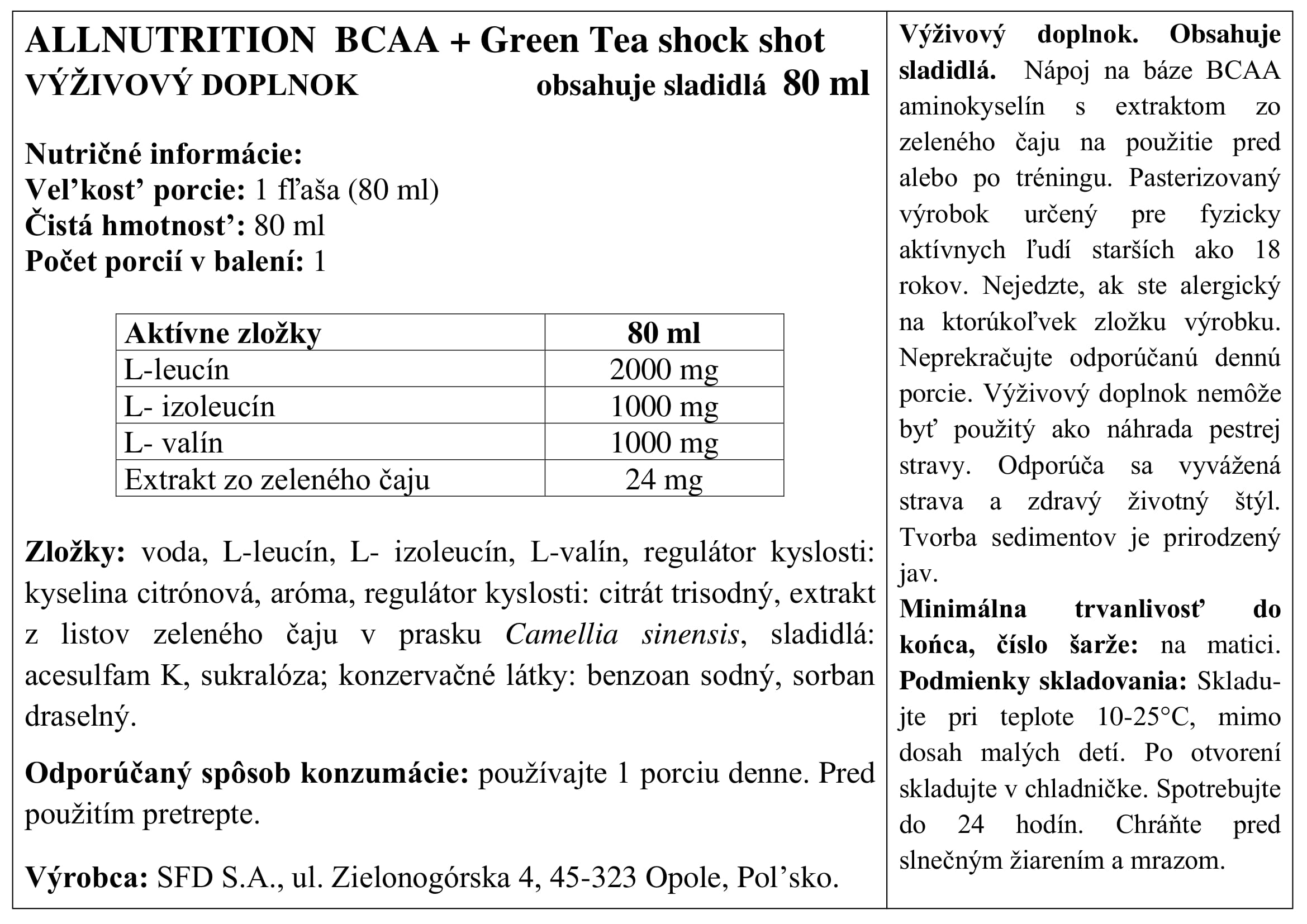 BCAA + GREEN TEA SHOCK SHOT je vhodná forma tekutých aminokyselín. BCAA + Green Tea Shock Shot je kombinácia leucínu, izoleucínu a valínu v pomere 2:1:1 obohatená o extrakt zo zelených listov.