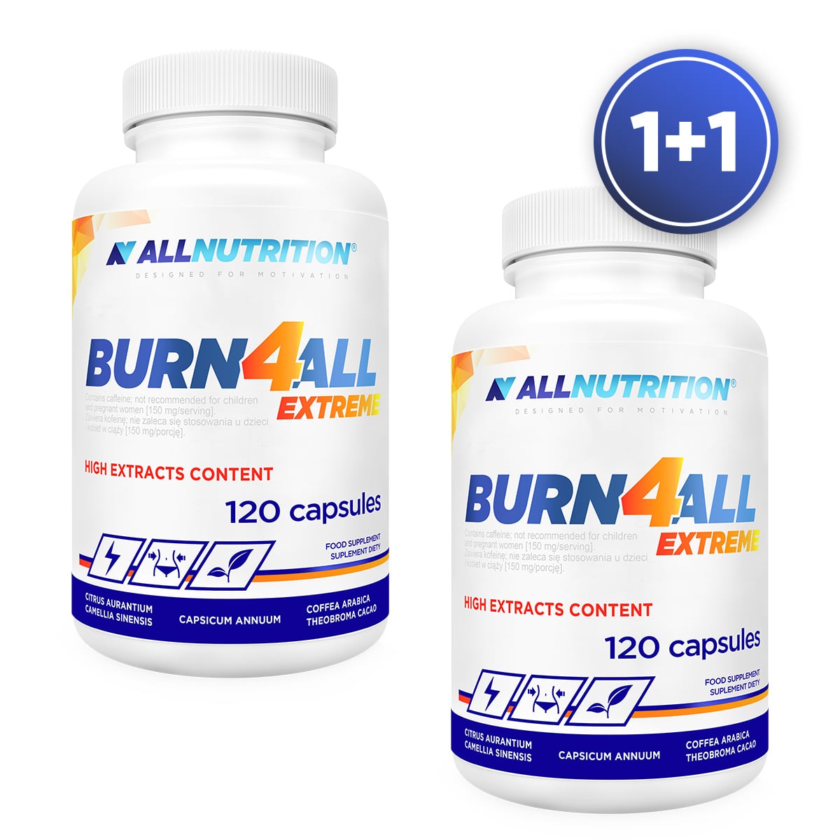 ALLNUTRITION BURN4ALL EXTREME je produkt vytvorený pre všetkých, ktorí túžia po účinnom a bezpečnom formovaní vysnenej postavy. BURN4ALL EXTREME obsahuje kofeín a 5 prírodných extraktov, ktorých synergické a komplexné pôsobenie podporuje diétu aj tréning.
