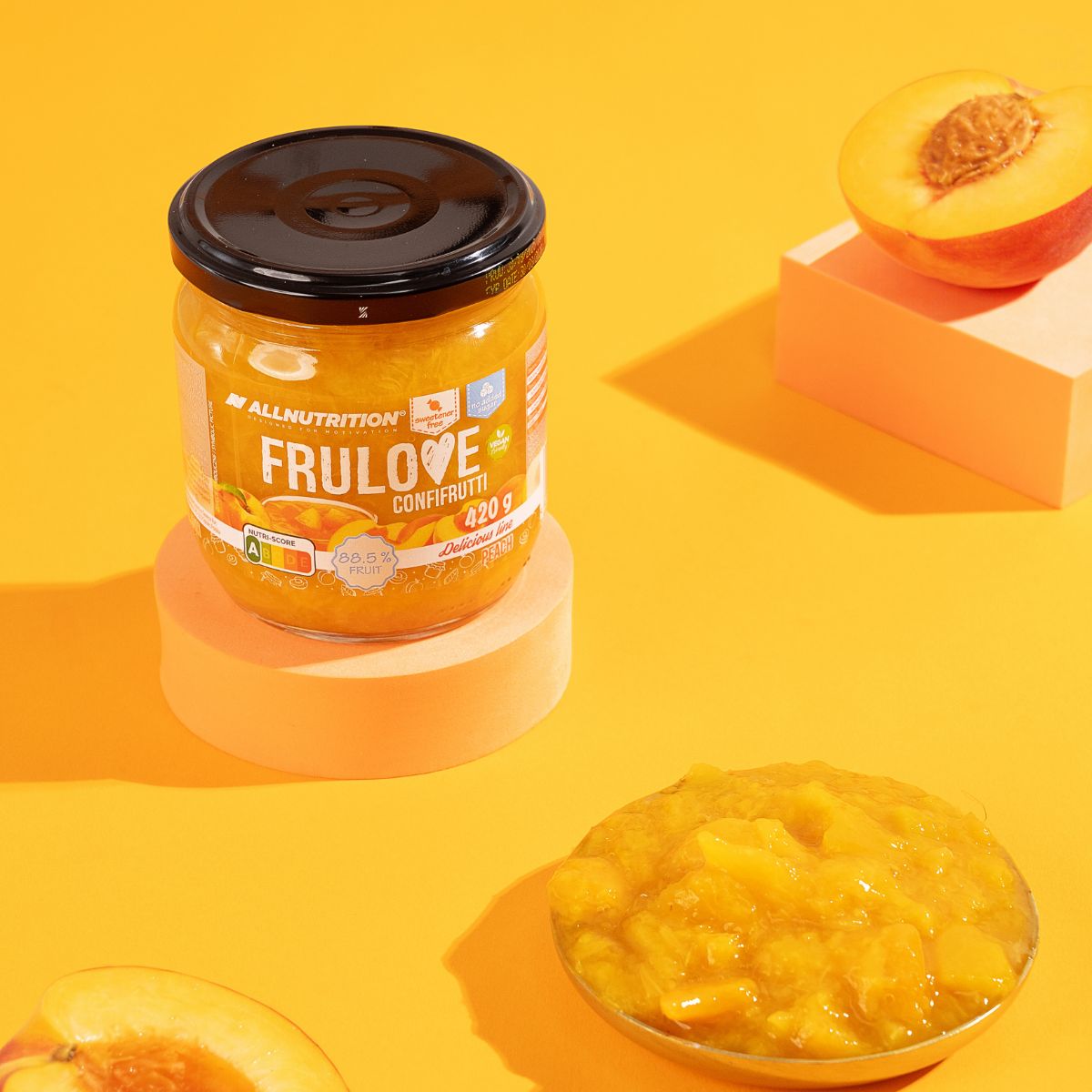 ALLNUTRITION FRULOVE CONFIFRUTTI PEACH je skutočná esencia ovocia, ktorej sladkosť pochádza výhradne z neho samotného. Je to ideálna voľba pre ľudí, ktorí dbajú na zloženie produktov aj chuť! FRULOVE CONFIFRUTTI PEACH je chutný broskyňový doplnok k tvojim jedlám.
