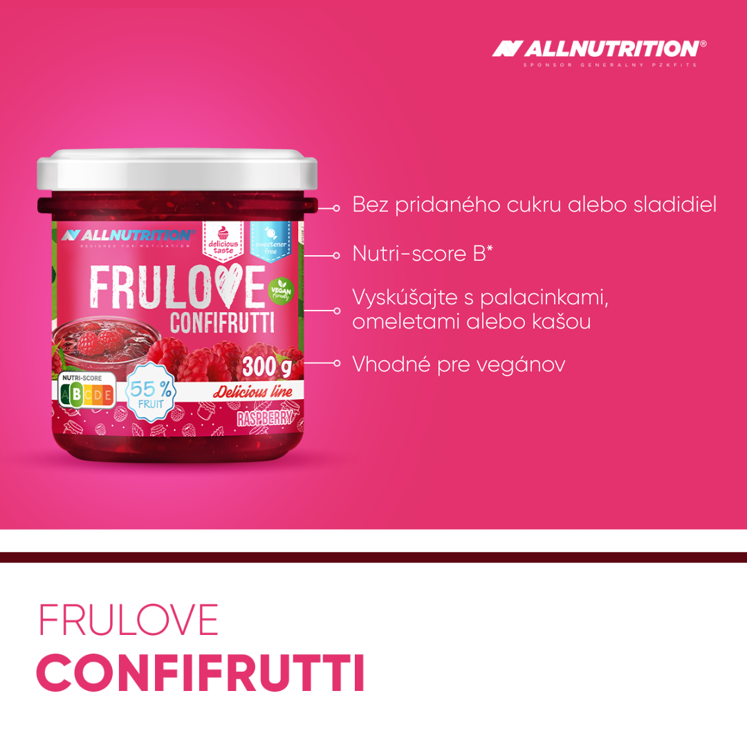 ALLNUTRITION FRULOVE CONFIFRUTTI RASPBERRY je skutočná esencia ovocia, ktorej sladkosť pochádza výlučne z neho samotného. Je to ideálna voľba pre tých, ktorí dbajú na zloženie produktov aj na chuť! FRULOVE CONFIFRUTTI RASPBERRY je lahodný malinový doplnok k tvojim jedlám.