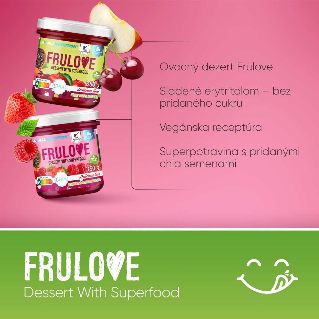 Keď sa jemný pôžitok z chuti stretne s nutričnými hodnotami, vznikne mimoriadny dezert ALLNUTRITION FRULOVE DESSERT WITH SUPERFOODS! Naša ovocná pochúťka s chia semienkami je skutočnou pastvou pre zmysly a perfektnou voľbou pre tých, ktorí túžia po troche zdravého potešenia. FRULOVE DESSERT WITH SUPERFOODS je bez pridaného cukru a je vhodný pre vegánov.