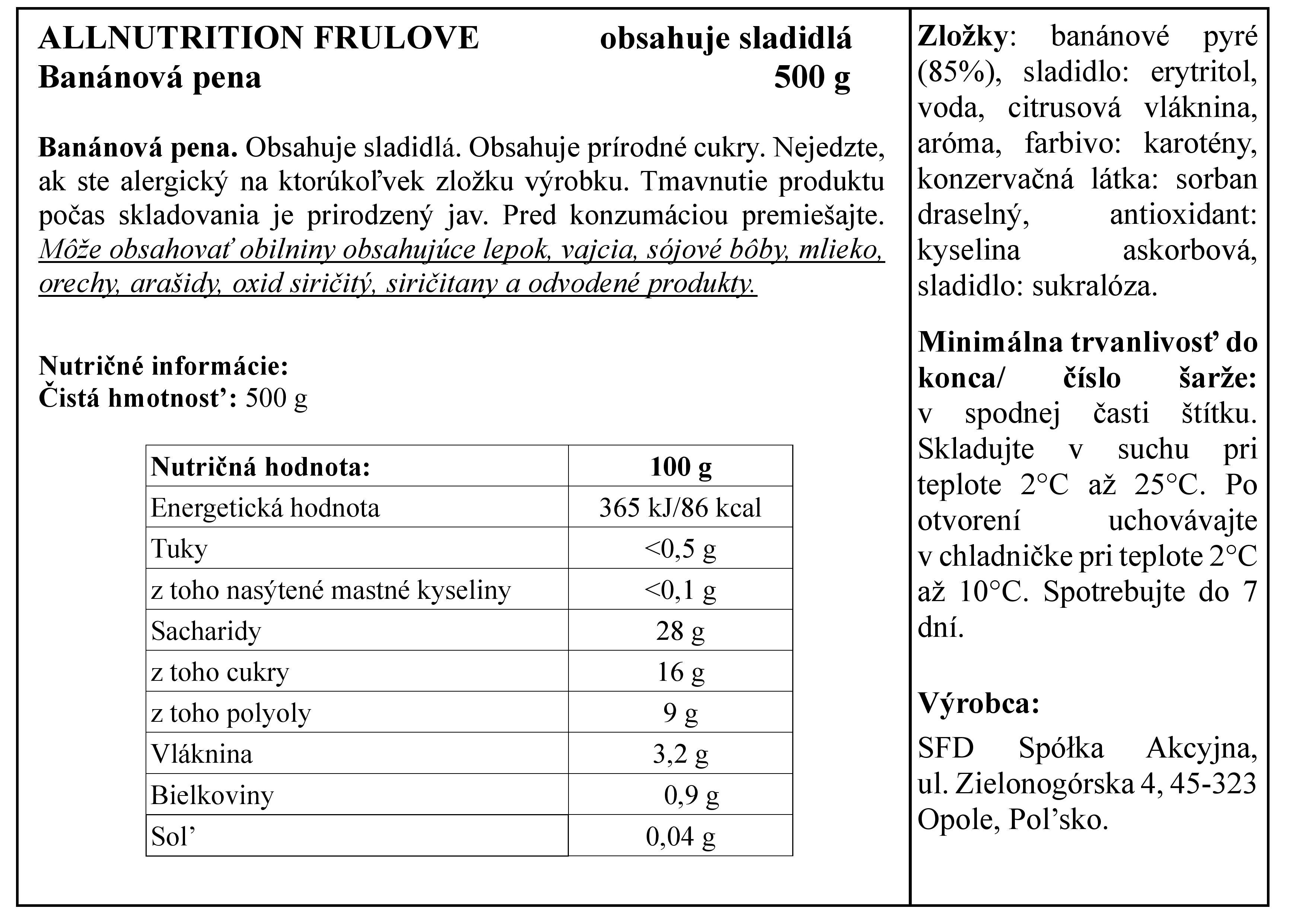 ALLNUTRITION FRULOVE OVOCNÉ PYRÉ mimoriadne chutné banánové pyré s perfektnou hladkou konzistenciou – jednoducho je to čistý ošiaľ!