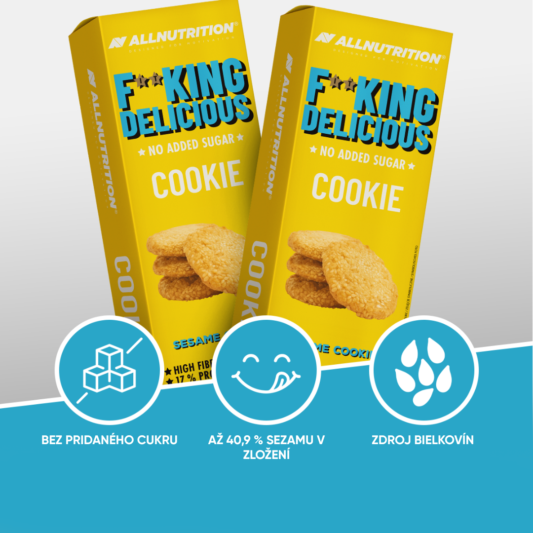 ALLNUTRITION FITKING DELICIOUS SESAME COOKIES sú vynikajúce, neuveriteľne chrumkavé sezamové sušienky vo verzii bez pridaného cukru. Vytvorené pre všetkých, ktorí si chcú vychutnať sladkú chuť bez obáv z nadbytku cukru.