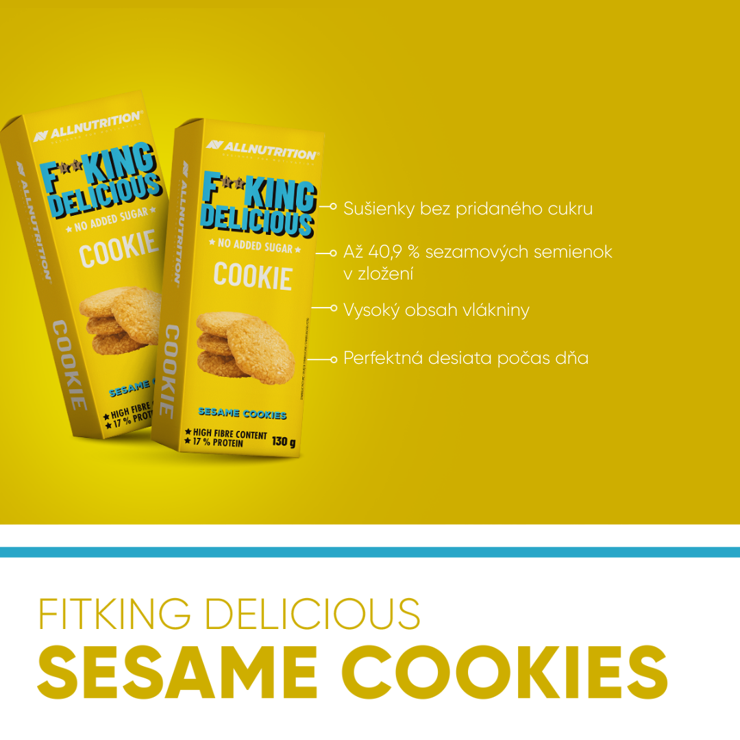 Vyskúšajte FITKING DELICIOUS SESAME COOKIES! Zaručujeme, že sa už nevrátite k obyčajným nudným sladkostiam. Tieto sušienky sú ideálne ako malá pochúťka do školy, do práce alebo na cesty. Musíte to ochutnať!