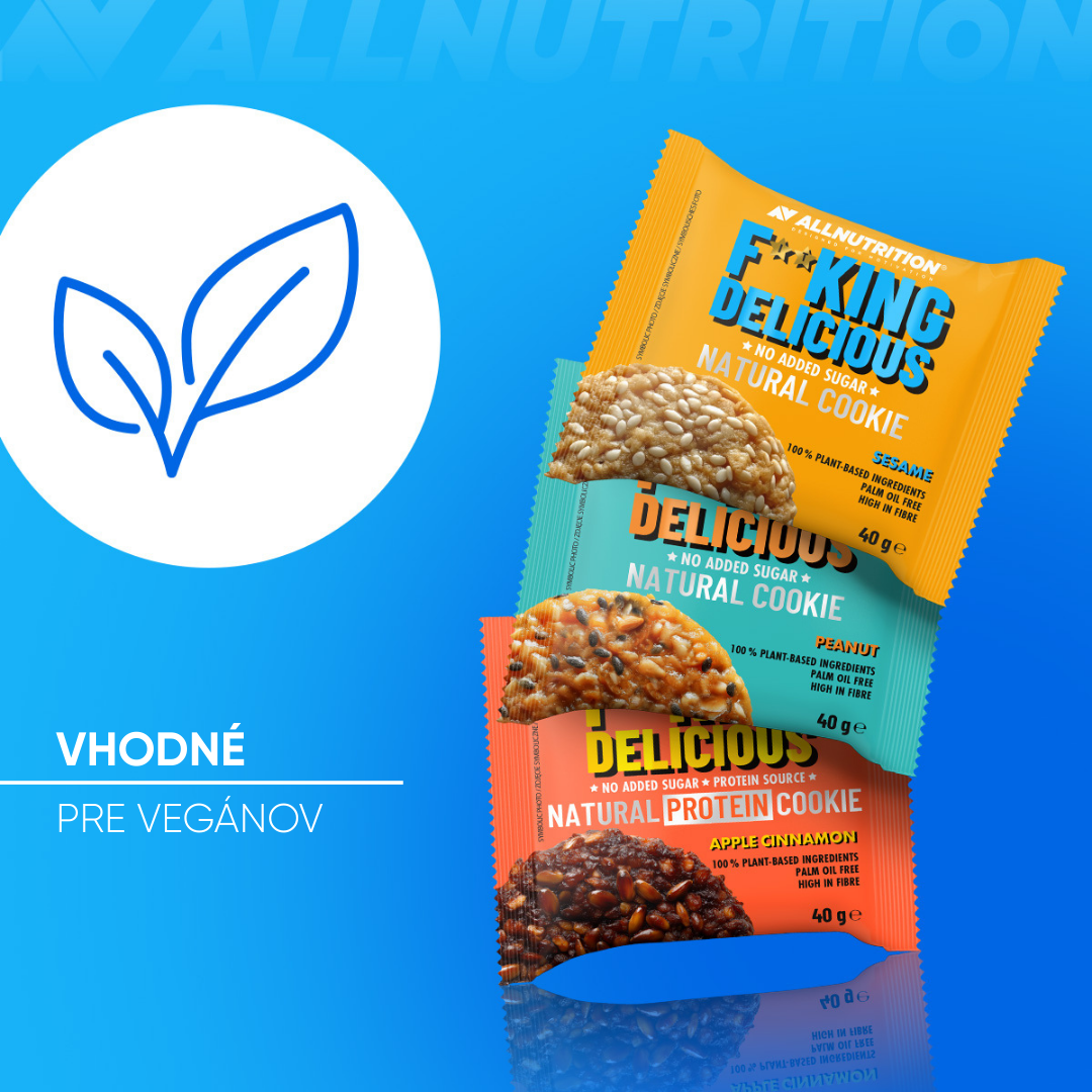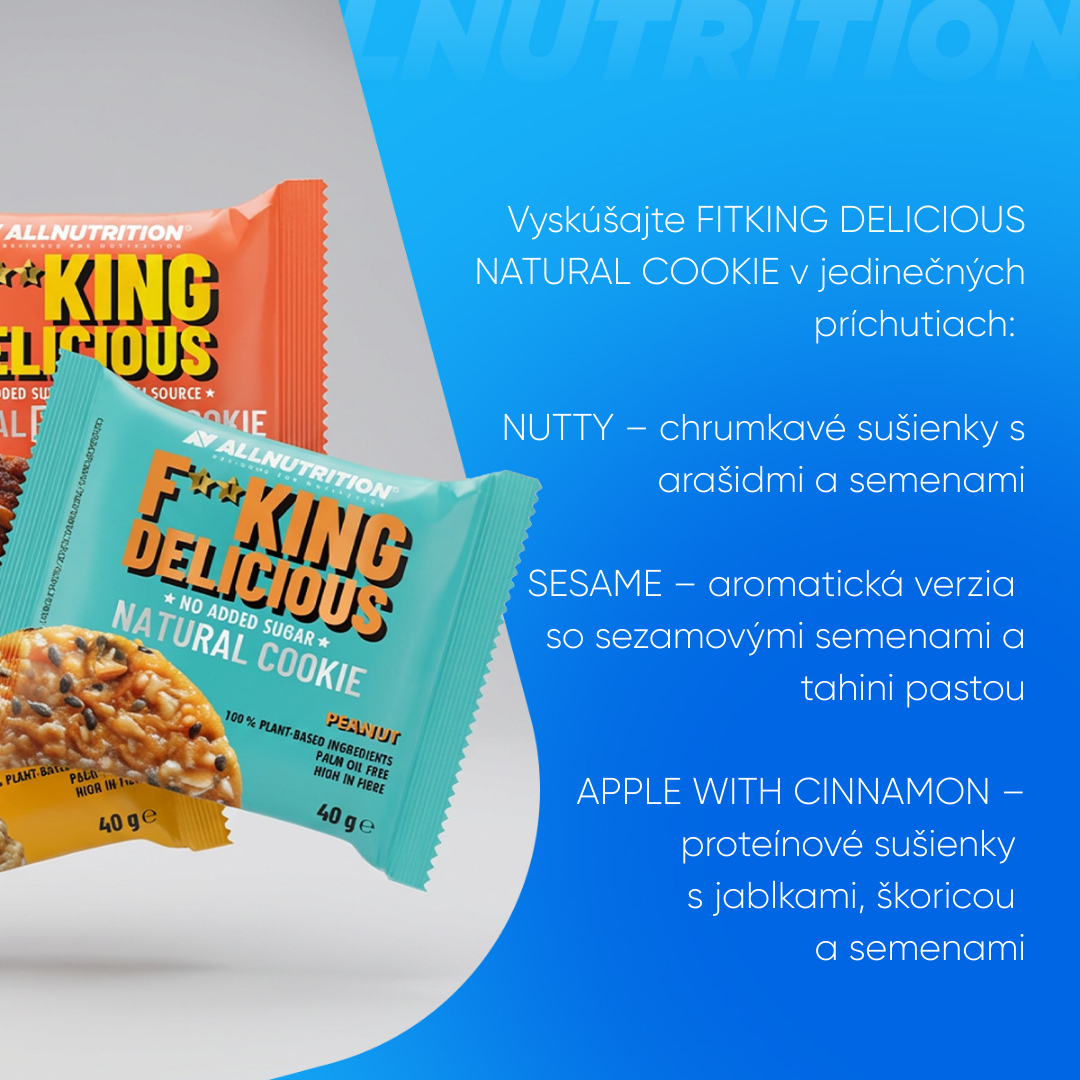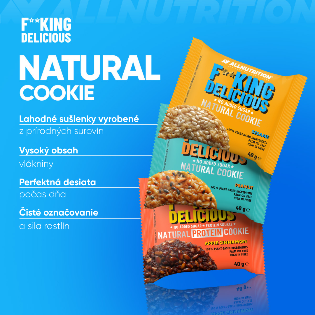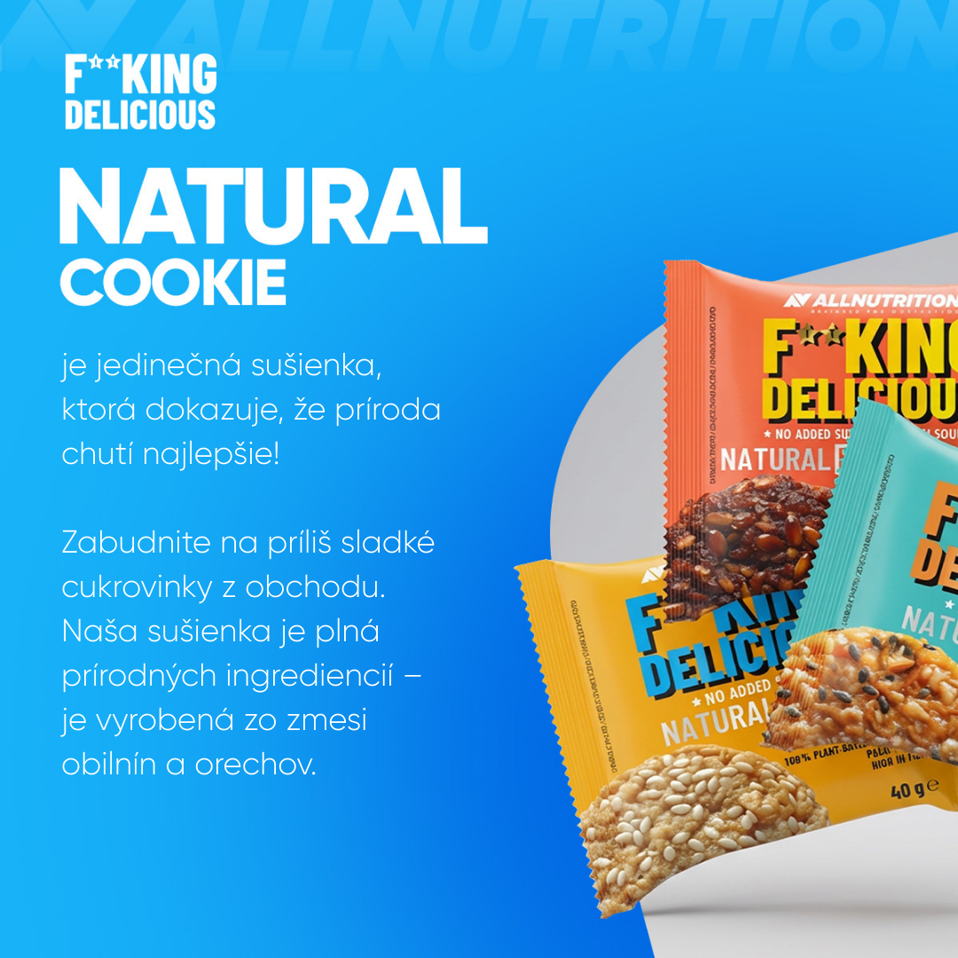 ALLNUTRITION FITKING DELICIOUS NATURAL COOKIE je výnimočná sušienka, ktorá dokazuje, že príroda chutí najlepšie! Zabudni na presladené obchodné sladkosti. Naša sušienka je bombou prírodných zložiek – je založená na zmesi zŕn a orechov. Ideálna voľba pre ľudí dbajúcich o stravu, vegánov a každého, kto hľadá chrumkavú desiatu bez výčitiek svedomia.