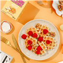 pšeničná múka, sladidlo: maltitoly, rastlinné oleje a tuky (palmový a repkový), vajcia, sójová múka, fruktooligosacharidy, modifikovaný kukuričný škrob, stabilizátor: glycerol, vanilková aróma, soľ, emulgátor: lecitíny [zosóje], kypriace látky: difosforečnany, uhličitany sodné, fosforečnany vápenaté, konzervačná látka: sorban draselný, citrónová šťava, proteín z rohovky, vláknina z karobu