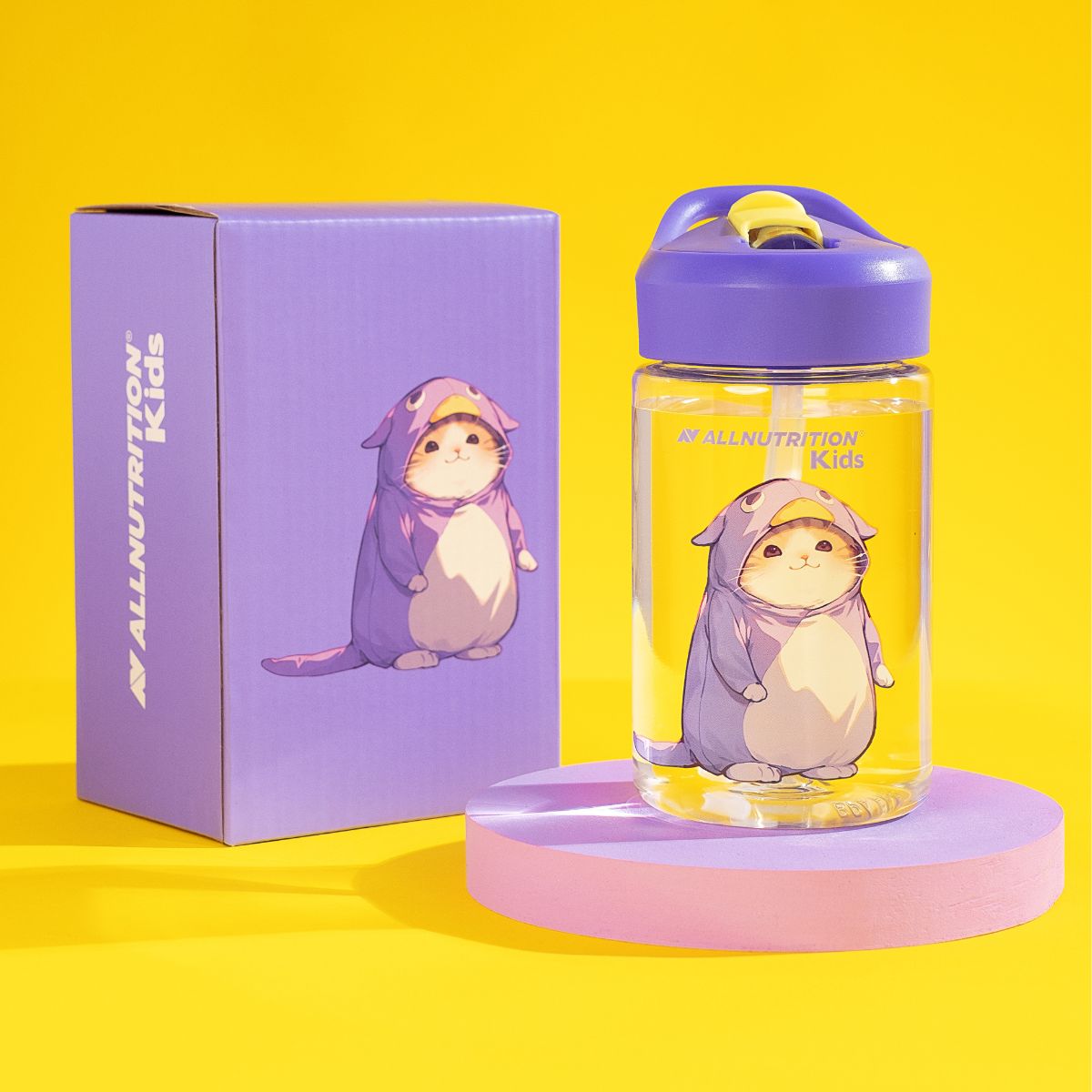 ALLNUTRITION FĽAŠA PRE DETI je praktická fľaša s trubičkou s objemom 350 ml, navrhnutá s ohľadom na najmenších objaviteľov. Je vyrobená z moderného materiálu Tritan, je ľahká, odolná a bezpečná pre malé rúčky. Farebný dizajn s roztomilou mačičkou v kostýme spôsobí, že pitie sa stane obľúbenou činnosťou tvojho dieťaťa.