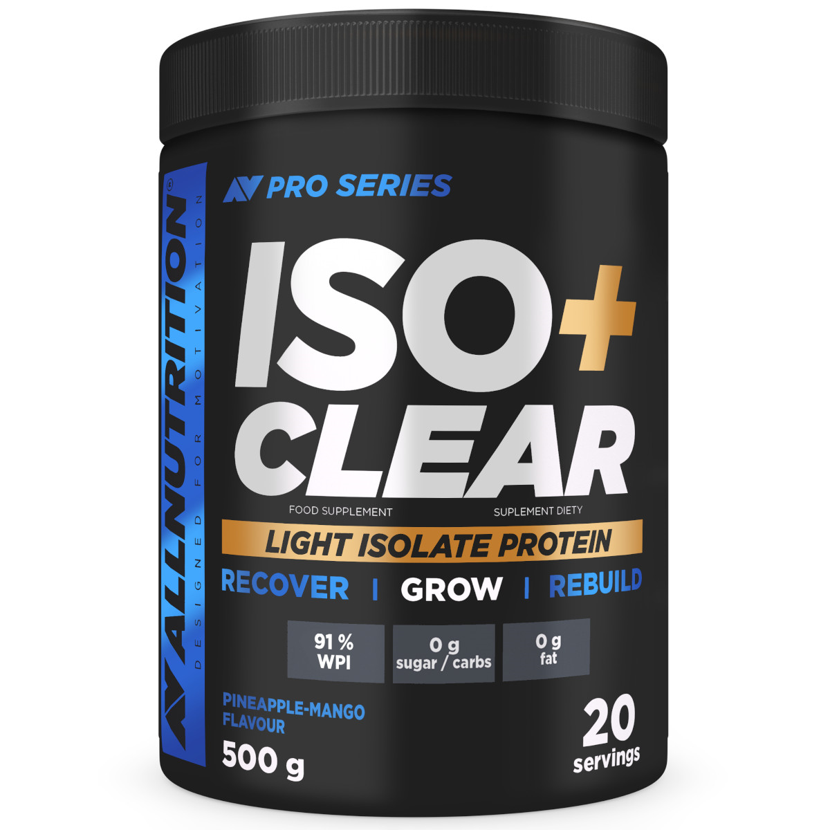 ALLNUTRITION PRO SERIES ISO+ CLEAR je vysoko kvalitný proteínový doplnok WPI. Vďaka tomu, že základom je izolát srvátkového proteínu, nápoj po rozpustení vo vode nemá klasickú krémovú konzistenciu proteínového shakeu, ale pripomína ľahký, osviežujúci nápoj bez mliečnej príchute.
