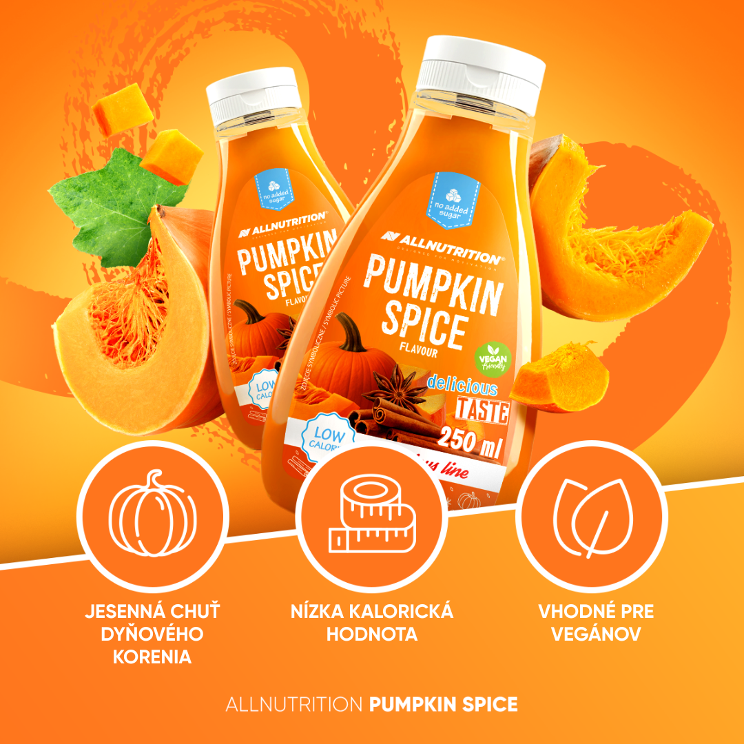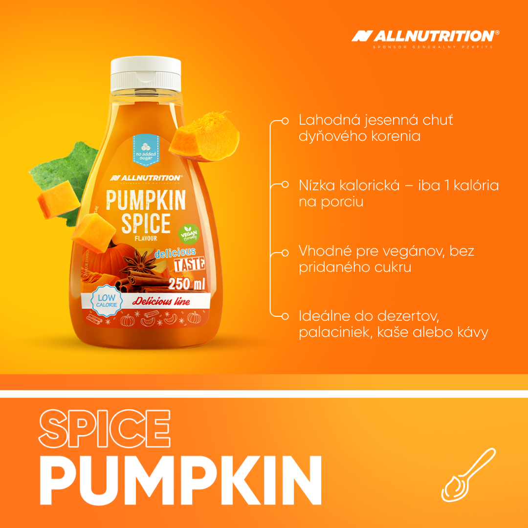 Precíť vôňu a teplo jesene! ALLNUTRITION SAUCE PUMPKIN SPICE je chutná, aromatická omáčka s tekvicovou príchuťou a korenistým nádychom. Vytvorená pre tých, ktorí si chcú vychutnať magickú jesennú atmosféru bez výčitiek.