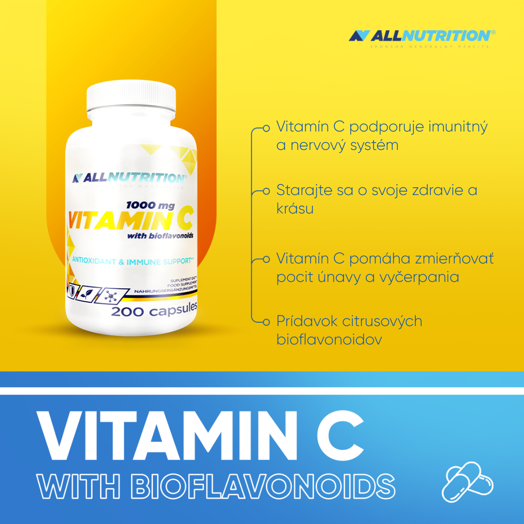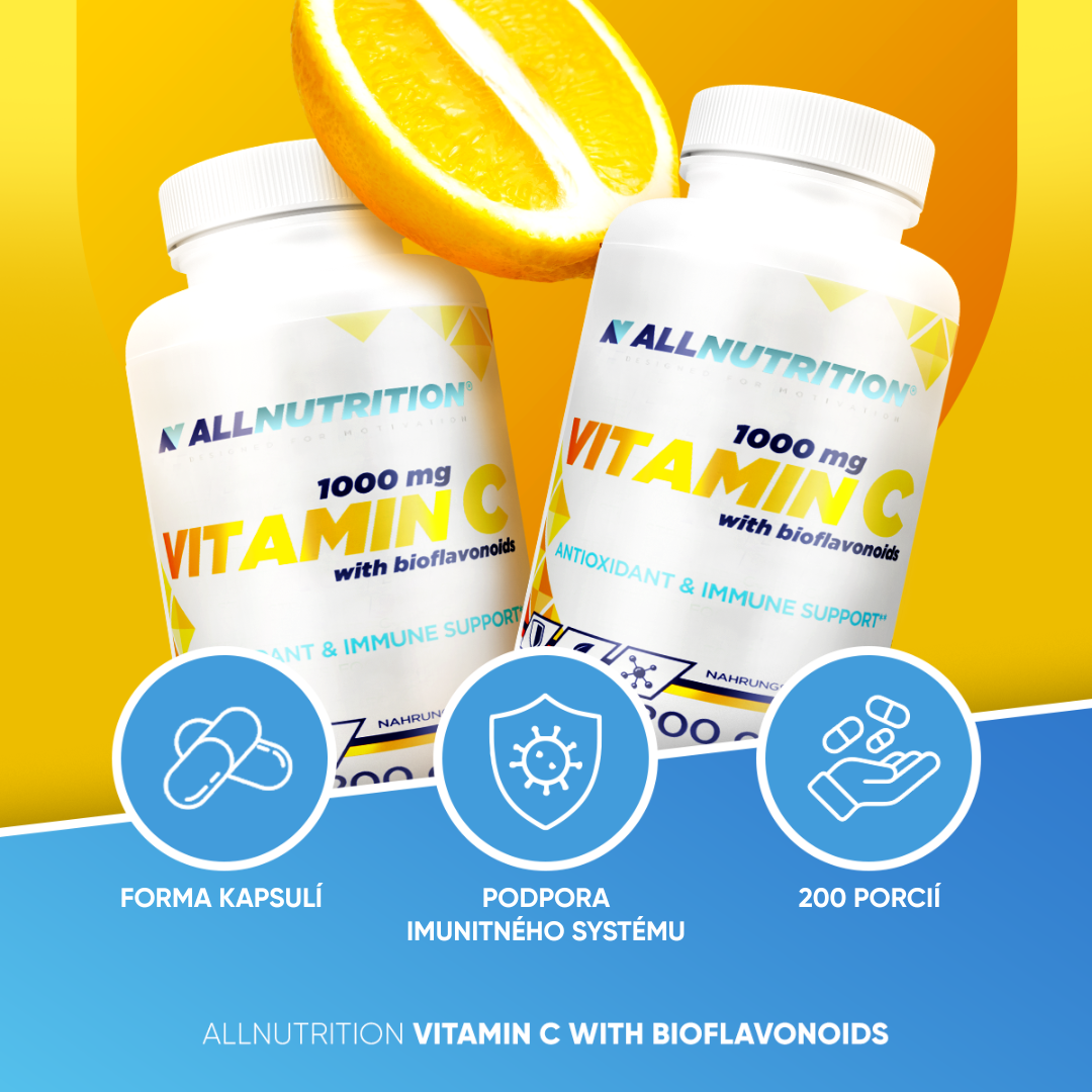 ALLNUTRITION VITAMIN C WITH BIOFLAVONOIDS je produkt určený na doplnenie nedostatku vitamínu C a zlepšenie fungovania imunitného systému. Vďaka vysokému obsahu vitamínu C a bioflavonoidov, dvoch silných antioxidantov, pomáha produkt chrániť bunky tela pred oxidačným stresom.