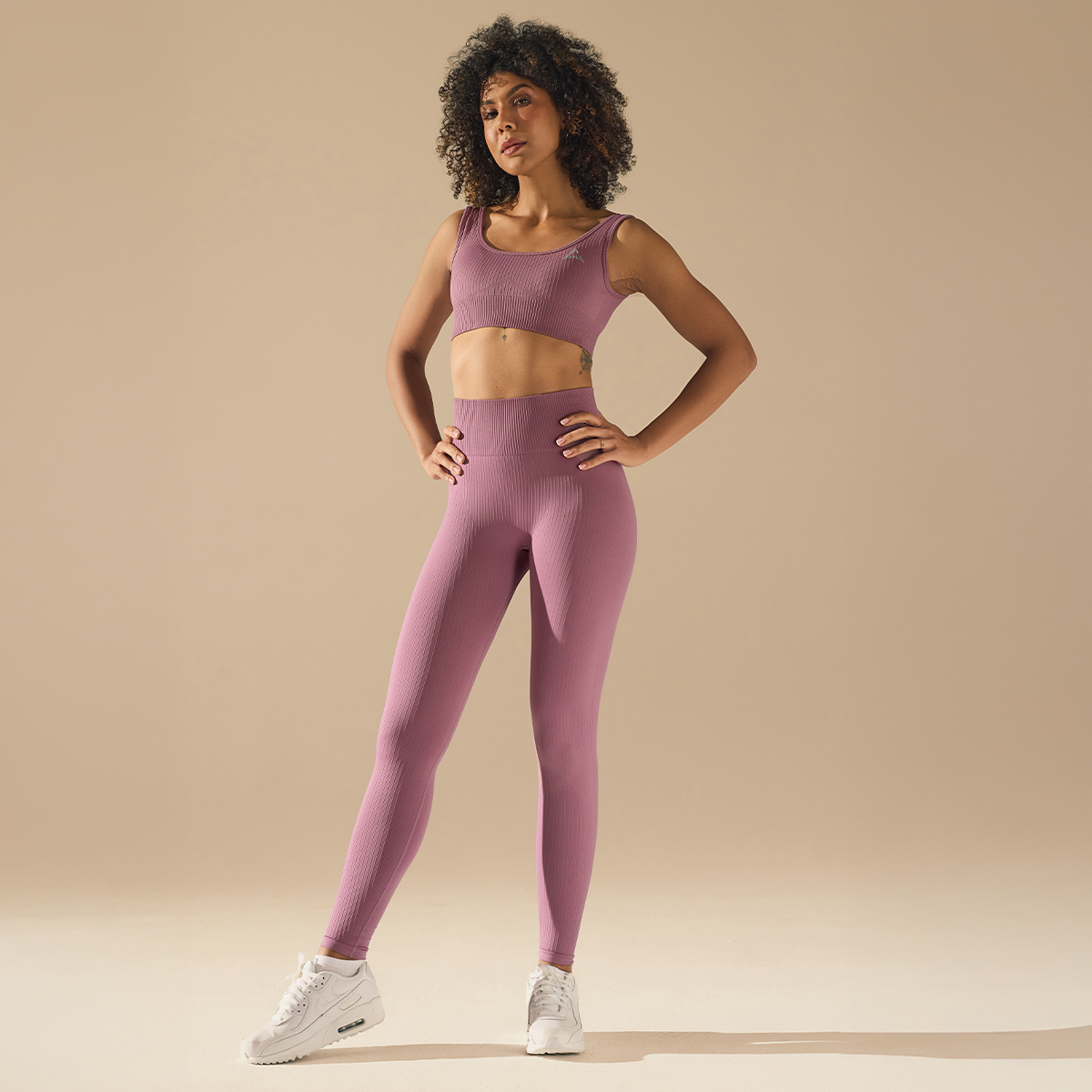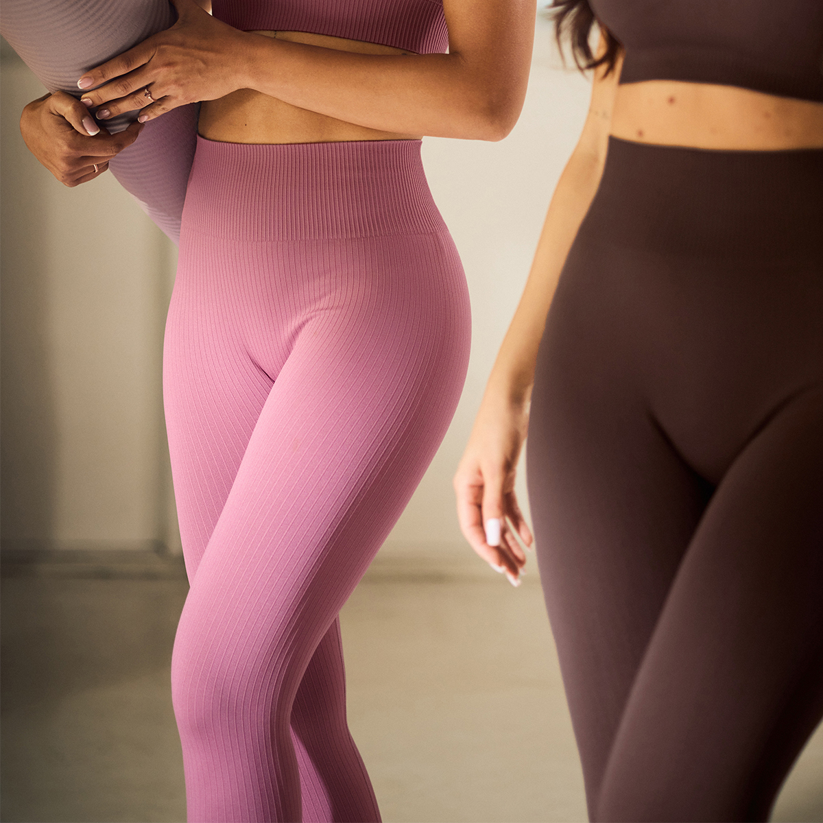 Vyrobené z mäkkého, elastického úpletu, legíny poskytujú úplnú voľnosť pohybu bez pocitu tlaku. Použitá bezšvová technológia eliminuje riziko podráždenia a vrúbkovaný materiál nielen skvele vyzerá, ale aj opticky zoštíhľuje a predlžuje nohy. Úplet je navyše priedušný, odvádza vlhkosť a rýchlo schne, čím sa stará o tvoj tepelný komfort počas celého dňa.