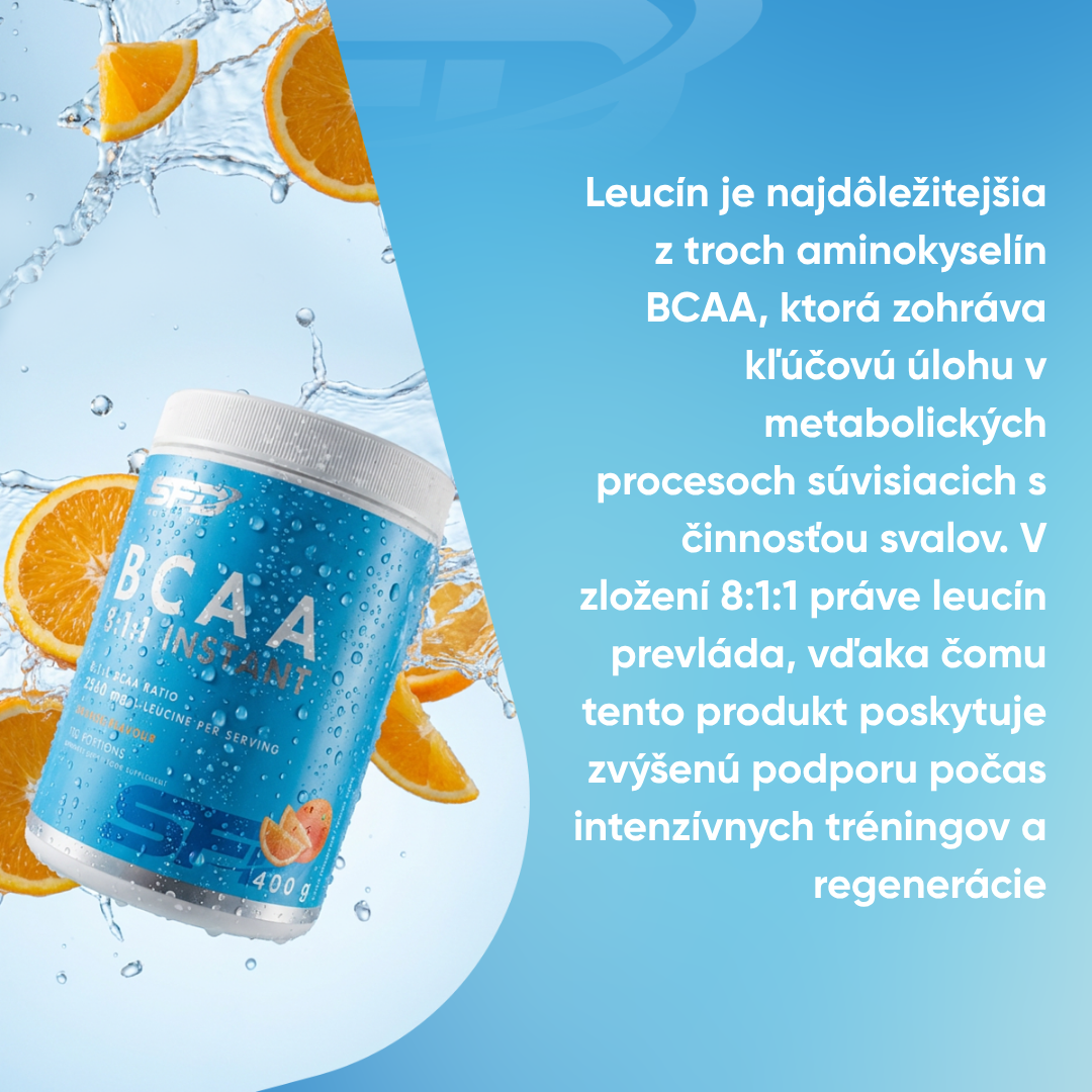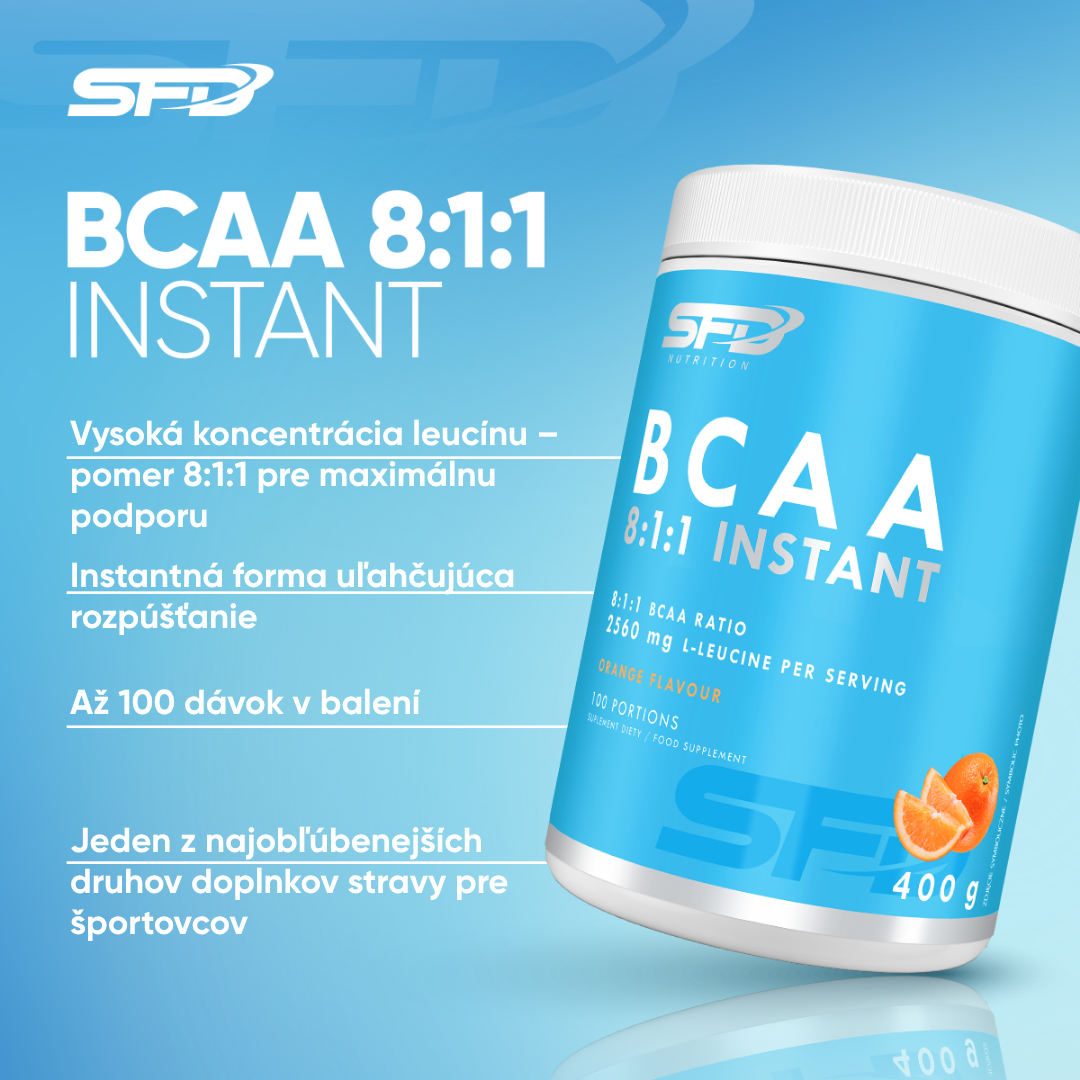 SFD BCAA 8:1:1 je komplex rozvetvených aminokyselín v pomere 8:1:1 (l-leucín : l-valín : l-izoleucín), vytvorený pre intenzívne trénujúcich športovcov a fyzicky aktívnych ľudí. Dominantná dávka leucínu – kľúčovej aminokyseliny zo skupiny BCAA – podporuje organizmus počas tréningu aj vo fáze regenerácie.