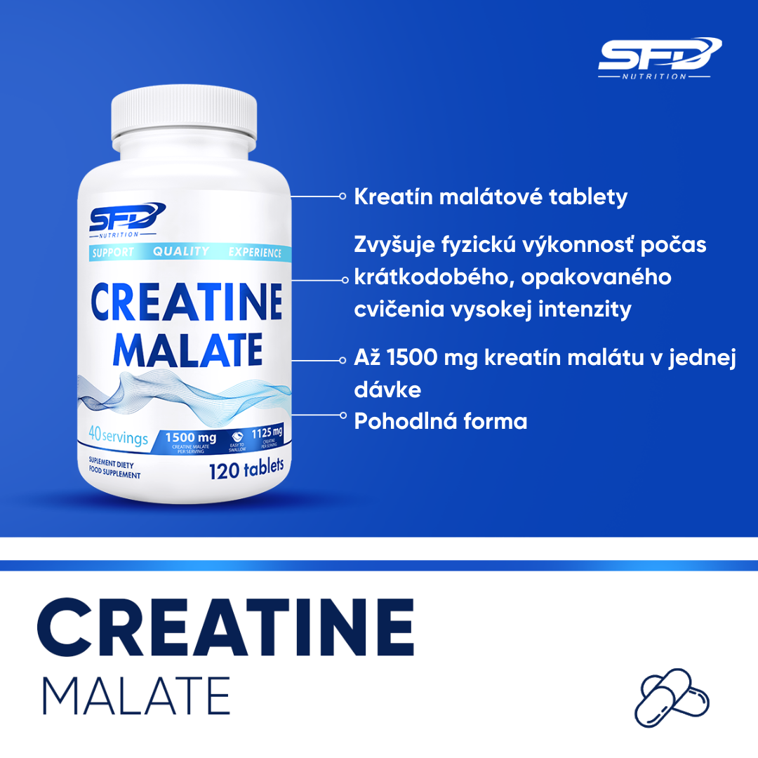kreatín malát, plnidlo: mikrokryštalická celulóza, škrob, protihrudkujúce látky: oxid kremičitý, horčíkové soli mastných kyselín