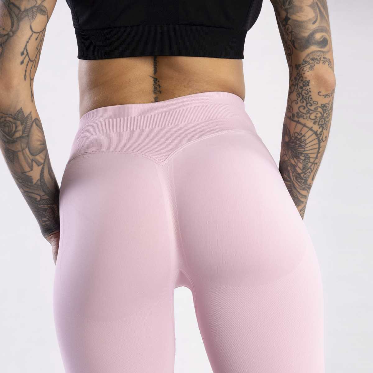 SEAMLESS LEGGINGS PUSH UP PINK vytvorené s dôrazom na detaily sú bezšvové a majú tvarujúce vlastnosti. Zvýrazňujú prirodzenú krásu každej ženy! Vysoký pás so širokou gumou modeluje oblasť brucha a push-up efekt spolu s ozdobnými textúrami pod zadkom zvýrazňuje jeho tvar. Legíny sa vyznačujú elastickým a na dotyk príjemným materiálom, ktorý zabezpečuje ideálne prispôsobenie telu a vysoký komfort pri nosení.