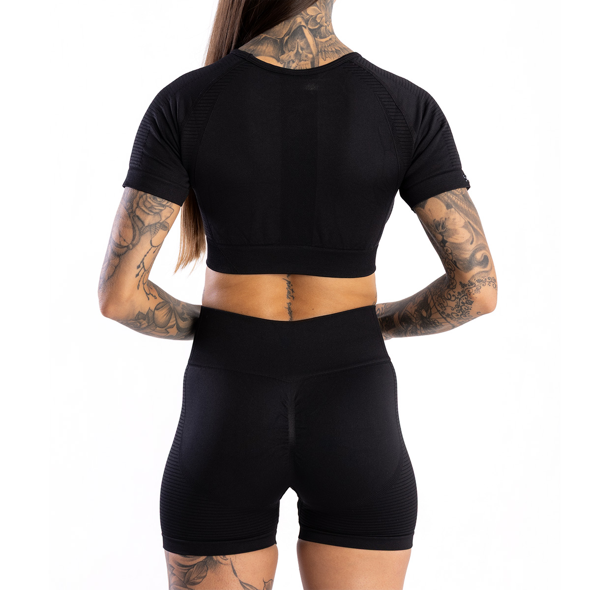 SEAMLESS SHORTS PUSH UP BLACK vytvorené s dôrazom na detaily sú bezšvové a majú tvarujúce vlastnosti. Zvýrazňujú prirodzenú krásu každej ženy! Vysoký pás so širokou gumou modeluje oblasť brucha a push-up efekt spolu s ozdobnými textúrami pod zadkom zvýrazňuje jeho tvar. Šortky sa vyznačujú elastickým a na dotyk príjemným materiálom, ktorý zabezpečuje ideálne prispôsobenie telu a vysoký komfort pri nosení.